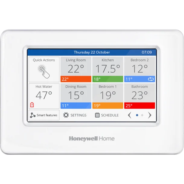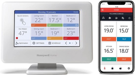 De Honeywell evohome wifi bedienunit vormt het hart van het evohome zoneregelingssysteem. Met deze slimme bedienunit regel je de temperatuur per ruimte volledig individueel, wat zorgt voor optimaal comfort en een efficiënter energieverbruik. Dankzij de intuïtieve touchscreen bediening en wifi connectiviteit heb je altijd en overal inzicht in en controle over je verwarmingssysteem.