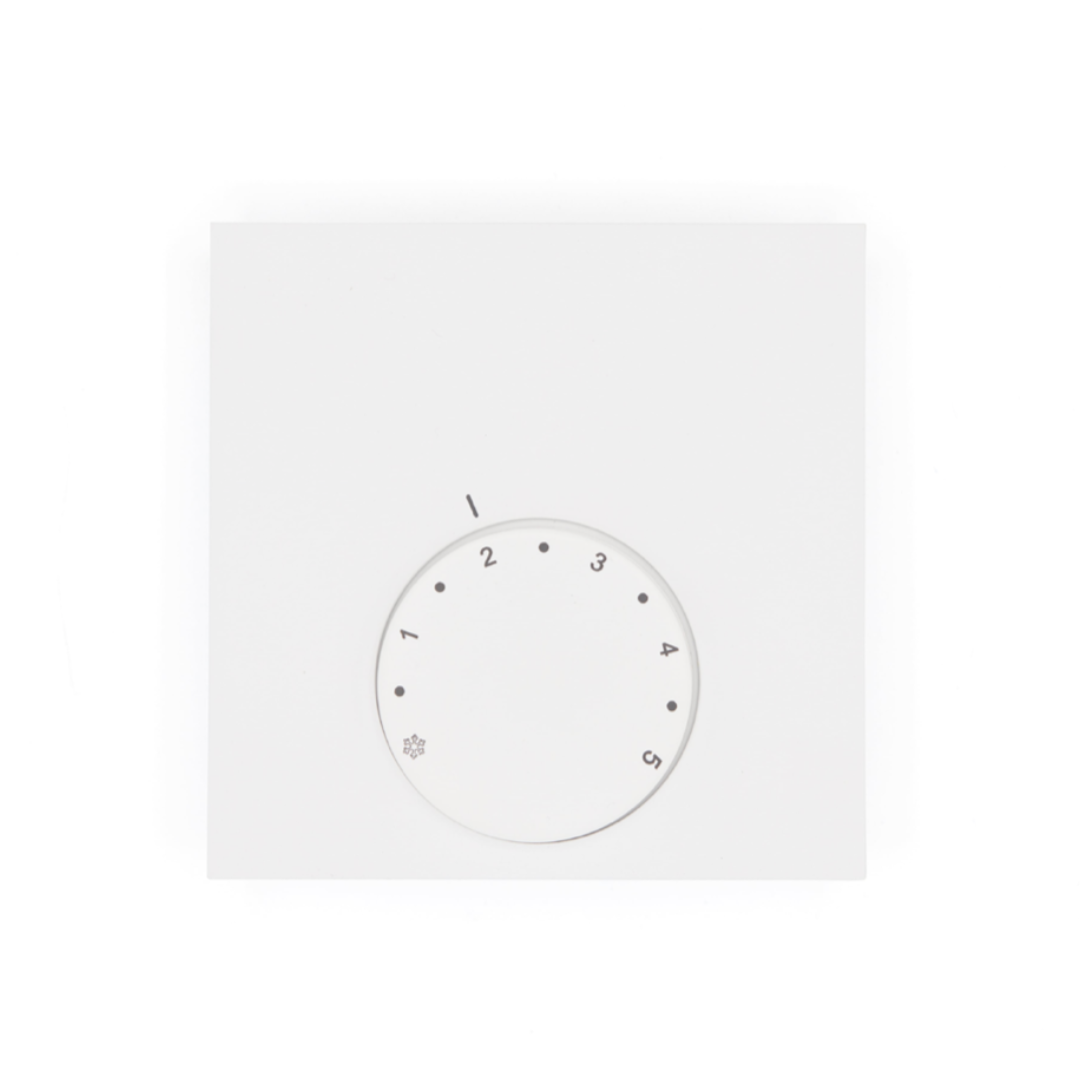 Deze uitvoering is uitsluitend geschikt voor verwarmen en ondersteunt geen koelfunctie. De gewenste temperatuur wordt ingesteld met een analoge draaiknop, wat zorgt voor een intuïtieve bediening zonder complexe instellingen. Met een regelbereik van 10 tot 28 °C en een kalibratienauwkeurigheid van circa 0,25 K levert de thermostaat een constant en comfortabel binnenklimaat.